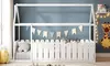 Lit cabane 90 x 190 cm "Calinou", conception en bois de pin, barrières latérales de sécurité, livraison offerte