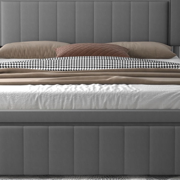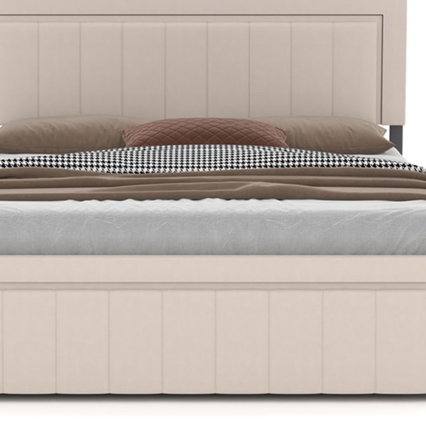 Redonnez du style à votre chambre avec le lit TOPEKA, une pièce au design graphique alliant élégance et ingéniosité. Son revêtement en velours doux et ses lignes structurées sur la tête et le pied de lit apportent une touche de modernité immédiate.