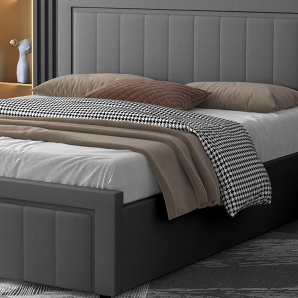 - design : lignes graphiques modernes sur la tête et le pied de lit