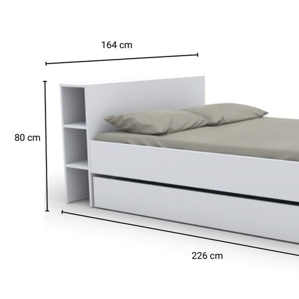 Ce lit est la solution pour les petites chambres ou les espaces où l'optimisation est essentielle. Ce modèle combine un couchage de 160 x 200 cm avec un maximum d'espaces de rangement intégrés, vous offrant à la fois fonctionnalité, modernité et gain de place.