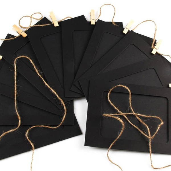 - L’ensemble comprend : 10 cadres photo, 10 agrafes en bois, 1 corde de coton