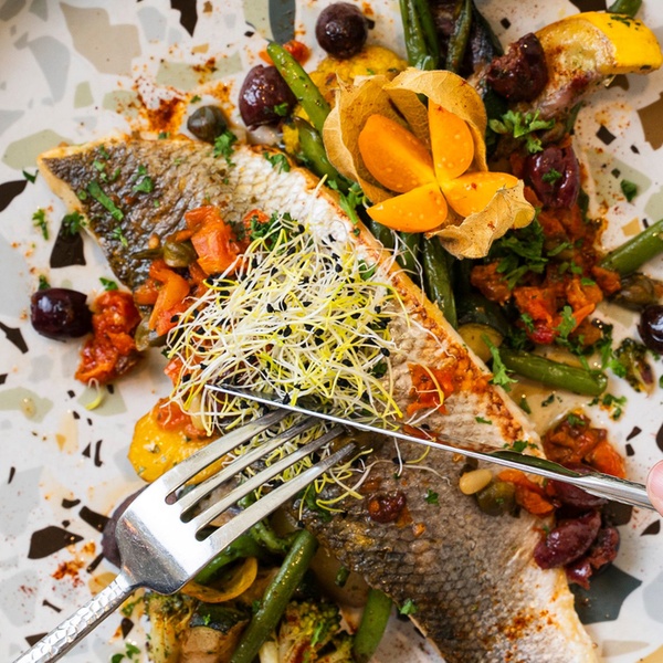 Pêche du jour, légumes de saison