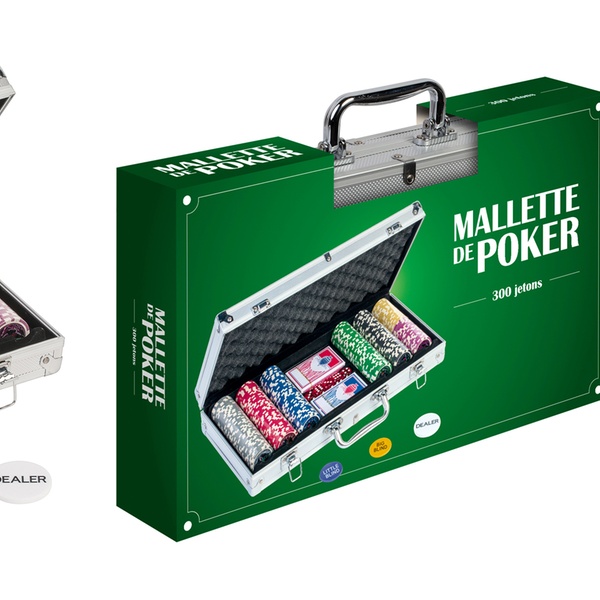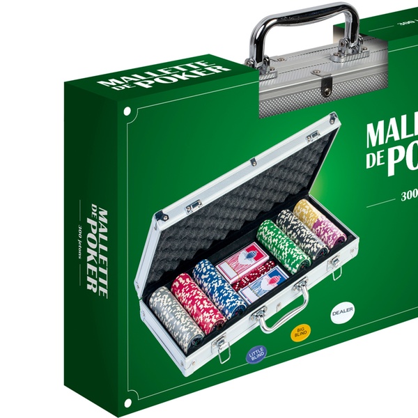- Contient 300 jetons de 11,5 grammes, 2 jeux de cartes, 1 jeton de dealer
