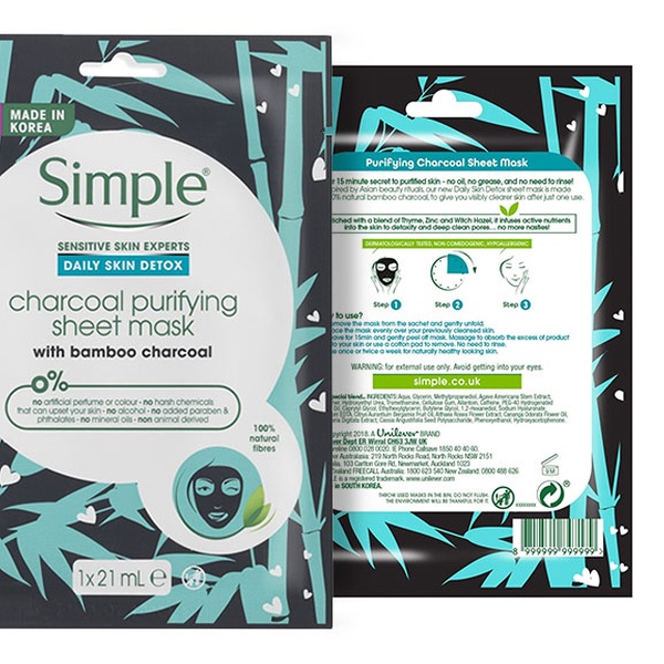 Ces masques de la marque Simple visent à nettoyer et purifier la peau