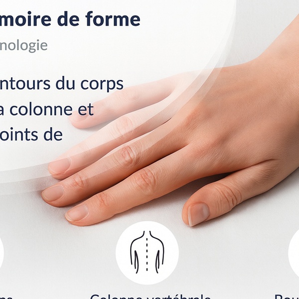 - Ergonomie : la mousse à mémoire de forme s"adapte à toutes les morphologies, favorisant une meilleure circulation sanguine ainsi qu'une réduction des douleurs dorsales et articulaires.