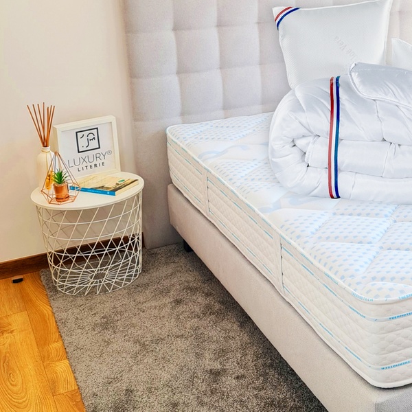 Matelas 24/30 cm avec sommier, tête de lit et couette Luxury Literie