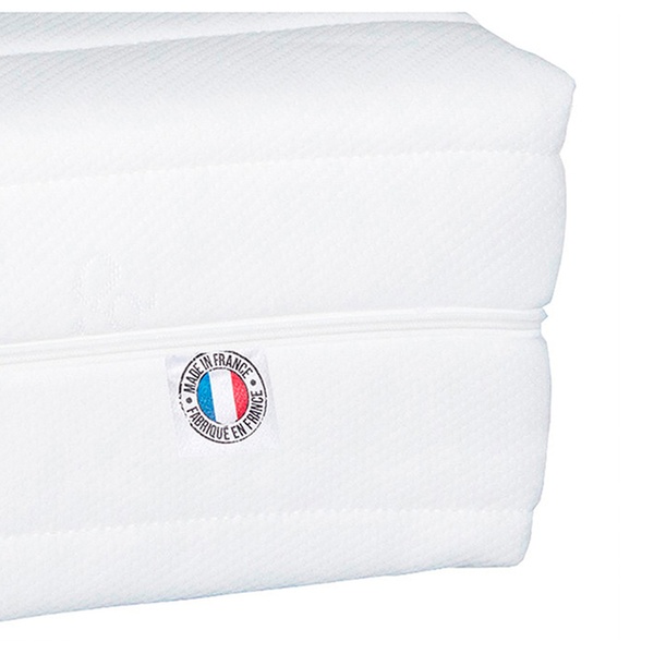 Ce matelas en mousse haute densité de 12 cm d'épaisseur avec système de suspension à triple treillis, est fabriqué en France, et offre un confort équilibré et un excellent soutien.
