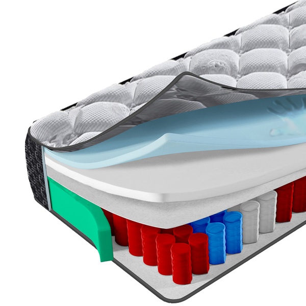 - Soutien ferme progressif grâce à ses multiples ressorts ensachés d’une hauteur de 19 cm, emballés dans des poches individuelles en tissus qui s’ajustent aux différentes pressions qu’exerce le corps (évite tout bruit mécanique)