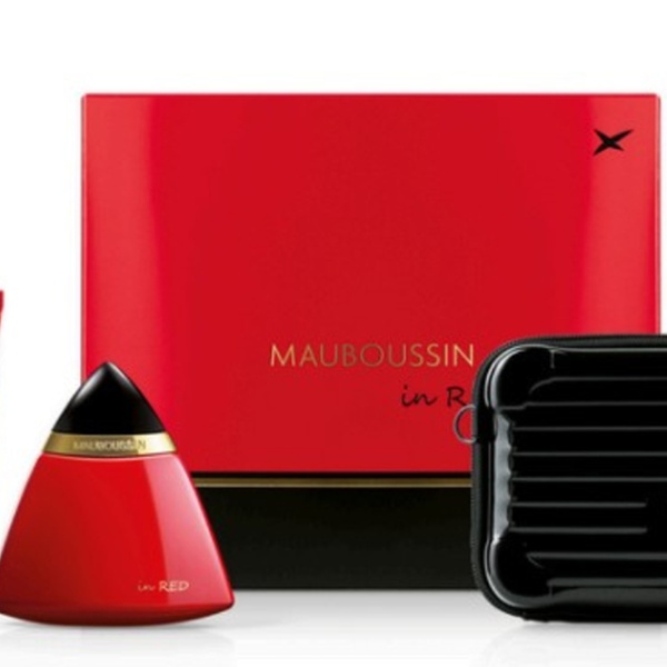Coffret Mauboussin avec eau de parfum de 100 ml au choix, gel douche 75 ml, travel spray 20 ml et sac à bandoulière