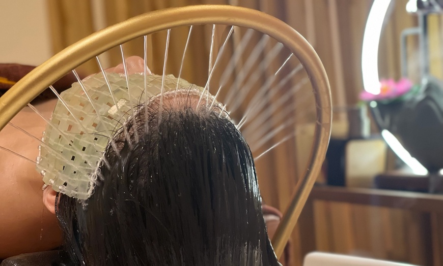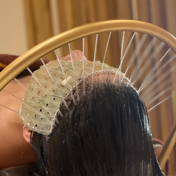 Ce rituel débute par un shampoing doux aux herbes qui prépare vos cheveux, suivi d'un massage crânien relaxant. Votre visage bénéficie ensuite d'un nettoyage délicat avant de recevoir un massage spécifique avec l'outil émeraude, pour illuminer et raffermir votre peau. L'expérience se conclut par l'application d'un après-shampoing nourrissant pour des cheveux éclatants.