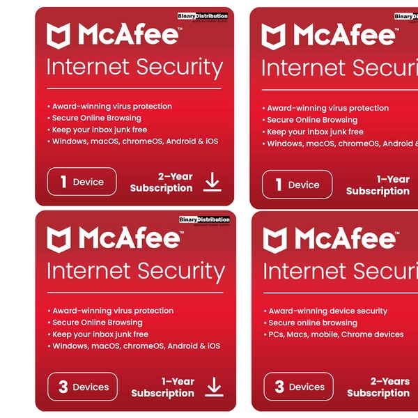 McAfee Internet Security 2025 pour 1 à 3 appareils, durée au choix, téléchargeable