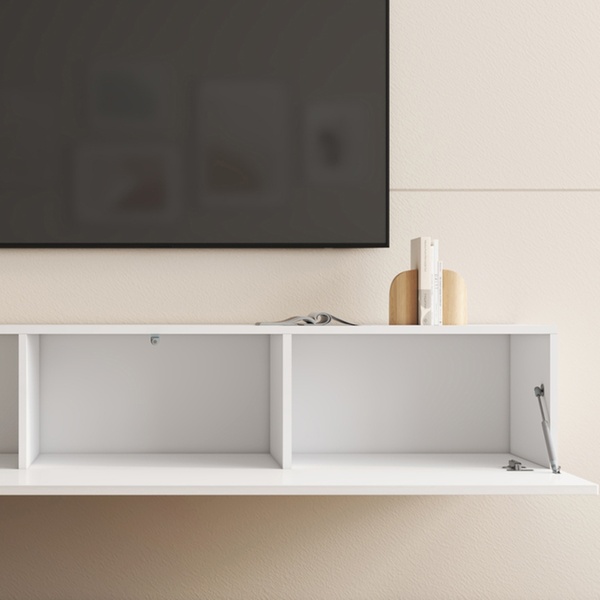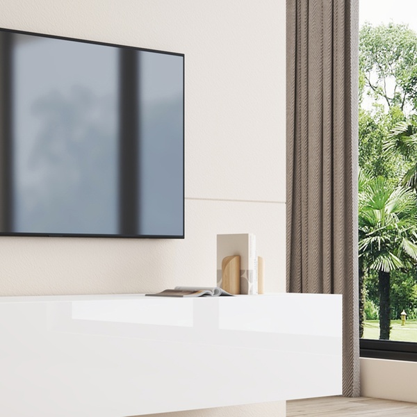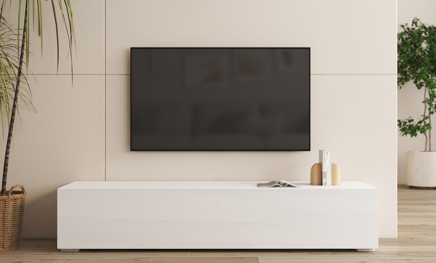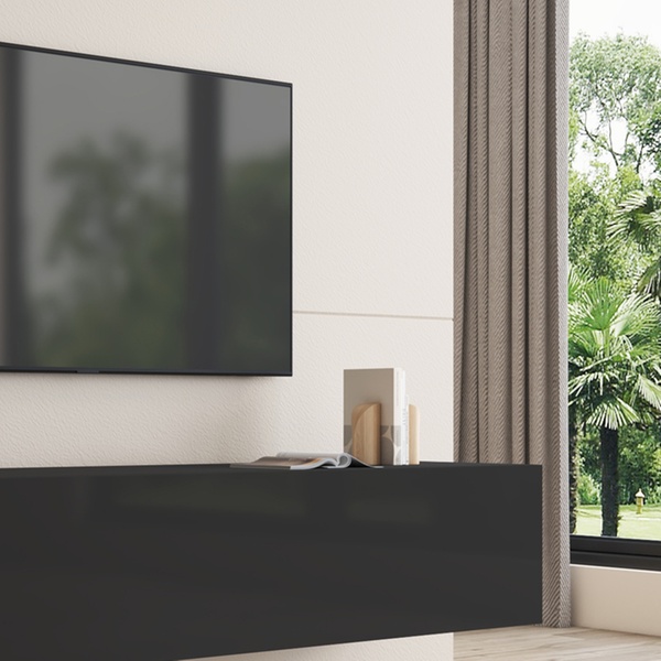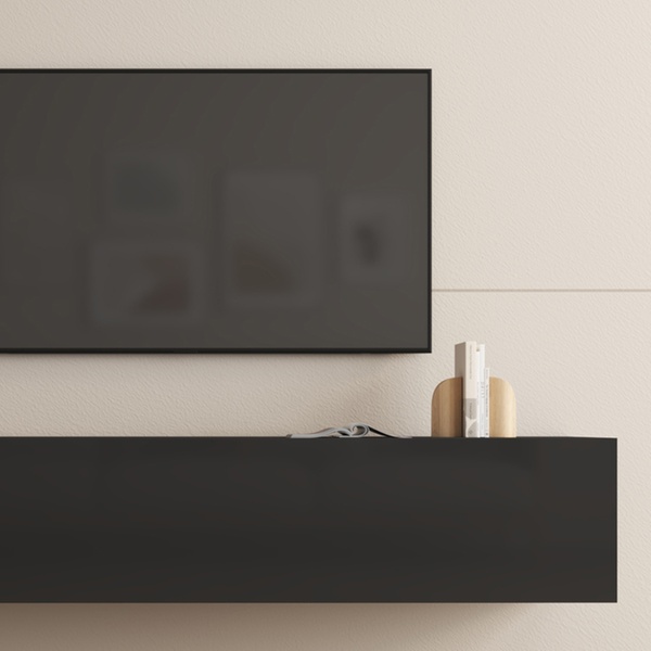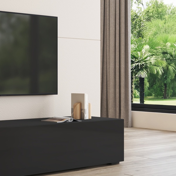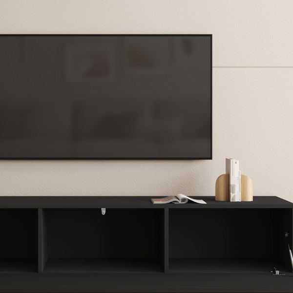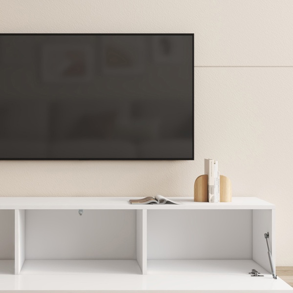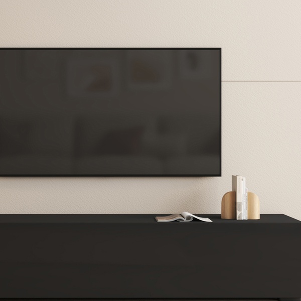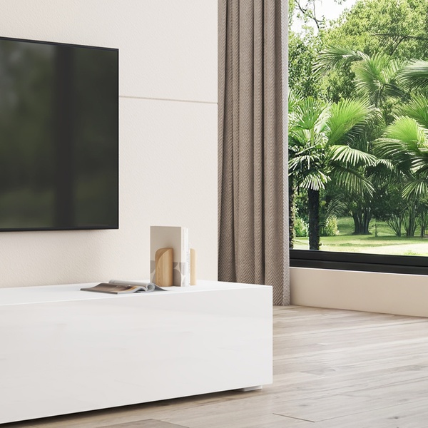 Le meuble TV Nora H2 de 160 cm est une pièce maîtresse pour un salon moderne. Il combine une structure mate avec des façades en PVC haute brillance, offrant un design épuré sans poignées grâce à son système d'ouverture push-click.