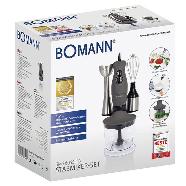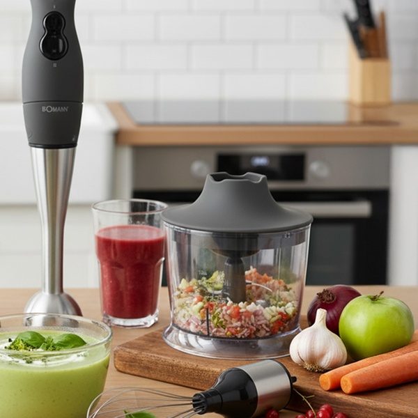 Mixeur plongeant Bomann avec batteur et fouet en option