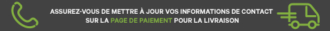 Votre Commande: Une fois le paiement effectué, une adresse de livraison sera demandée. Attention, elle ne pourra plus être modifiée après validation de votre commande.