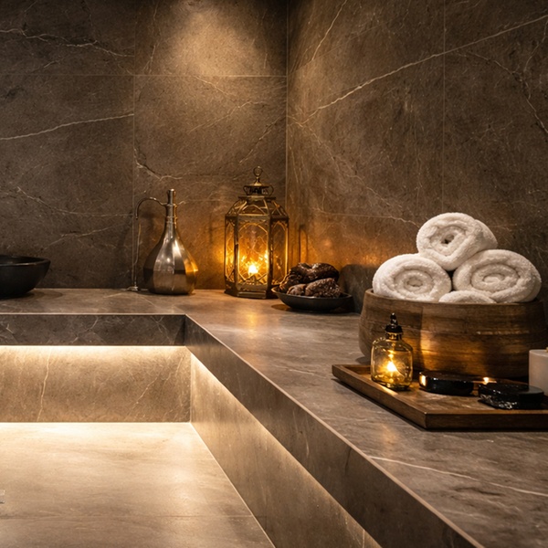 • Le hammam est réputé pour ses nombreux bienfaits sur le corps et le mental grâce à sa chaleur humide (contrairement au sauna qui est sec).