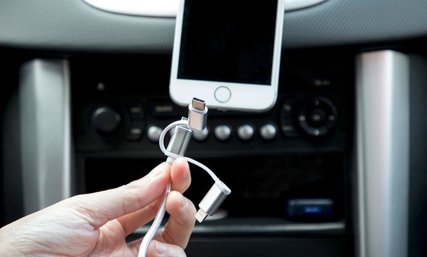 - Câble de 1 mètre en fibre de nylon 3 en 1: Lightning, Micro USB et type C