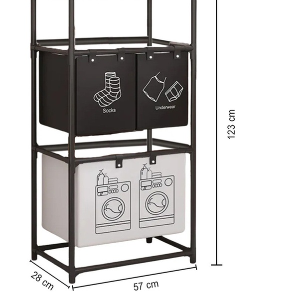 Optimisez votre organisation avec ce panier à linge multifonction au style industriel. Conçu pour allier robustesse et élégance, il simplifie votre quotidien grâce à son système de tri intelligent et sa tablette de rangement supérieure.