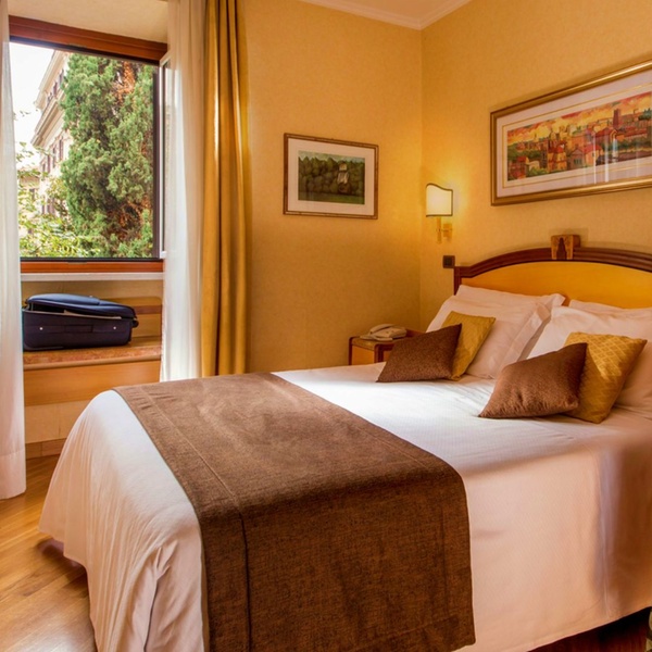 Pour cette escapade à Rome, nous vous avons sélectionné la chambre Standard, parfaite pour un couple, en famille ou entre amis. Élégantes et calmes, elles sont idéales pour vous reposer après avoir exploré la cité.