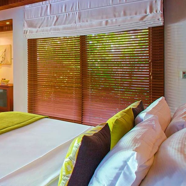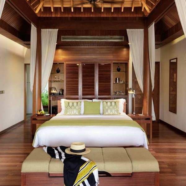 Plus spacieuse avec ses 103 m², la villa Baros jouit également d'une situation privilégiée juste en face de la plage de sable fin. Elle est entourée par la jungle épaisse qui domine l'île. Vous aurez ainsi l'assurance de la sérénité absolue. Sur la grande véranda boisée, un lit balinais s'ajoute aux deux chaises longues.