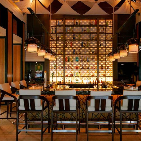 Le Sails Bar est construit au milieu de la flore luxuriante de l'île de Baros. Il est largement ouvert sur l'extérieur. Une partie des tables est d'ailleurs aménagée à l'ombre des cocotiers et des essences tropicales.
