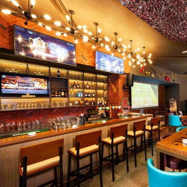Ce bar à l'ambiance de pub anglais a été conçu pour visionner les évènements sportifs en direct à la télévision. Dans les verres, plusieurs bières à la pression sont disponibles. Dans les assiettes, burgers, steaks et snacks sont à partager.