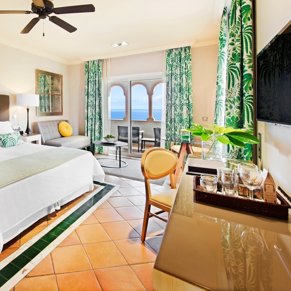 Laissez-vous séduire par la vue sur l'océan et les couchers de soleil magiques de l'île du printemps éternel, depuis l'une des grandes et spacieuses suites de luxe de l'hôtel Bahía del Duque. Ces suites à une chambre disposent d'articles de toilette exclusifs, d'un salon et d'une décoration élégante et sophistiquée.