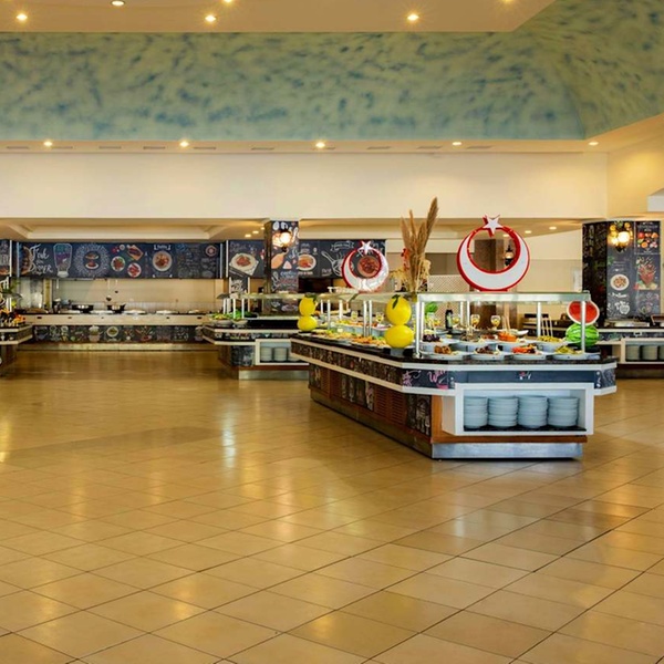 Le restaurant principal est le seul de l'établissement qui propose à ses hôtes un buffet à chaque repas. Lumineux et ouvert sur une terrasse ombragée, ce lieu gourmand sert une cuisine internationale. Un buffet est dédié aux enfants.