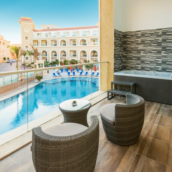 Cadre rêvé pour un voyage en amoureux sur la Riviera égyptienne, les chambres king peuvent héberger deux hôtes au maximum. Ces vastes cocons disposent d'un bain à remous et d'un balcon avec vue sur la piscine. Ils comprennent une connexion Wi-Fi, une télévision LCD, un minibar et une machine à café.