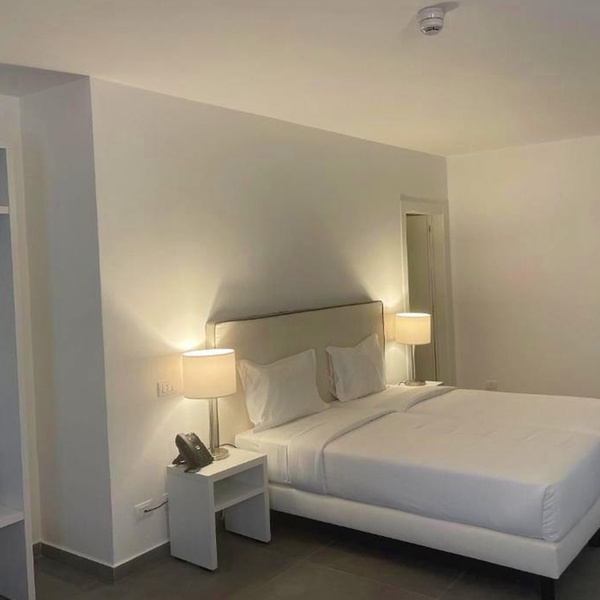 Les chambres de l'Oasis White Hotel adoptent le même style épuré qui caractérise l'ensemble de l'établissement. Les couples y bénéficieront de tout le confort moderne et d'une généreuse superficie.