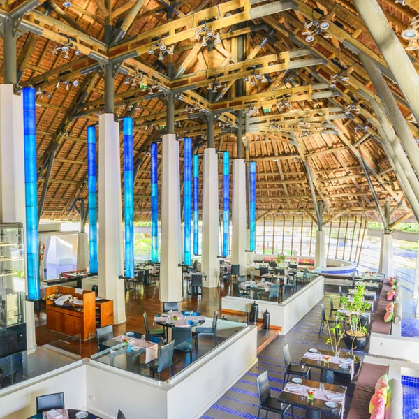 Au Ravinala, profitez des généreux buffets mettant en valeur les saveurs du monde. Découvrez et savourez les délices sains et savoureux de la cuisine mauricienne, française, indienne, latino ou barbecue. L'ambiance intimiste est magnifiée par la lueur d'une bougie sur votre table, tandis que le doux clapotis de la piscine et des vagues de l'océan s'entrecroisent. Sous le clair de lune éclairant les palmiers, l'atmosphère asiatique du Ravinala vous invite à vivre des expériences culinaires captivante.
