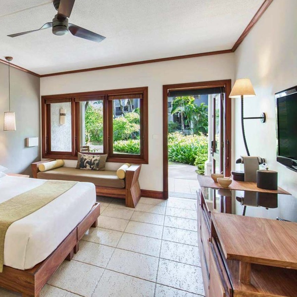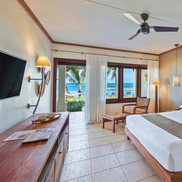 Plusieurs catégories de chambres Deluxe sont proposées, avec vue sur le jardin, la mer ou en front de mer, toutes habillées d’une décoration élégante d’inspiration coloniale.