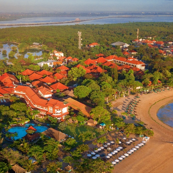 À l'extrémité sud de l'île de Bali, le Sol by Melia Benoa Bali 5* ouvre ses portes au cœur d'un jardin tropical communiquant directement avec la mer. Pour faire de votre séjour sur la péninsule de Bukit un vrai moment d'évasion, votre resort met à votre disposition ses chambres et ses suites raffinées, ses bars et ses restaurants. Une vaste piscine extérieure, un centre de bien-être avec spa et salle de sport ainsi qu'un accès direct à la plage ajoutent aux attraits de cette belle adresse au bord de l'océan Indien.