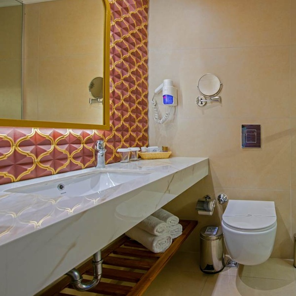 Les 65 chambres climatisées de l'hébergement vous invitent à la détente et comprennent un minibar et une télévision LCD. Les chambres sont dotées d'un balcon. L'accès Wi-Fi à Internet gratuit vous permet de rester en contact avec le reste du monde et votre divertissement est assuré par des chaînes par satellite. Une salle de bain privée avec une douche est à votre disposition. Vous y trouvez également des articles de toilette gratuits et un sèche-cheveux.