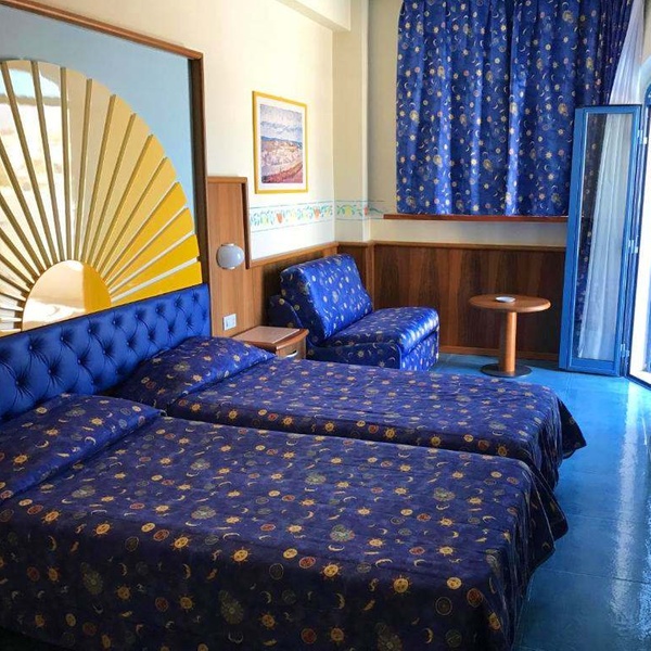 Pour les trios d'amis et les petites familles, la chambre triple propose un lit double ainsi qu'un lit simple ou un canapé-lit selon la configuration de la pièce. Depuis sa fenêtre, vous aurez une belle vue sur la rue commerçante de la Via Naxos et ses animations. En saison, vous bénéficierez de la climatisation.