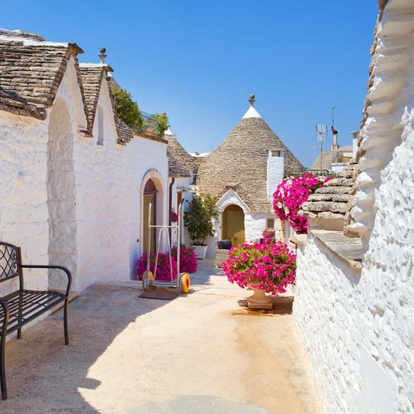 Route pour Alberobello, étape incontournable de tout voyage dans les Pouilles et site classé par l’UNESCO. Vous prenez plaisir à vous balader dans les petites rues tortueuses à la découverte des « trulli », ces habitations singulières aux toits coniques typiques de la région. Savourez un apéritif déjeunatoire dans un restaurant aménagé dans un « trullo », l’une de nos adresses préférées à Alberobello (boissons non comprises). Nuit dans la région d'Alberobello.