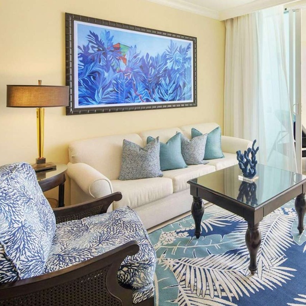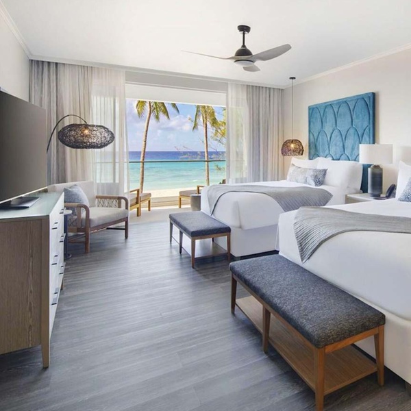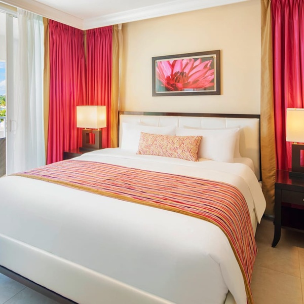Cette suite dispose d'une chambre séparée et d'un spacieux salon qui se prolonge par un coin-repas. Sa cuisine vous invite à concocter vos plats. Depuis le grand balcon, vous aurez une vue à couper le souffle sur la plage et les eaux turquoise.