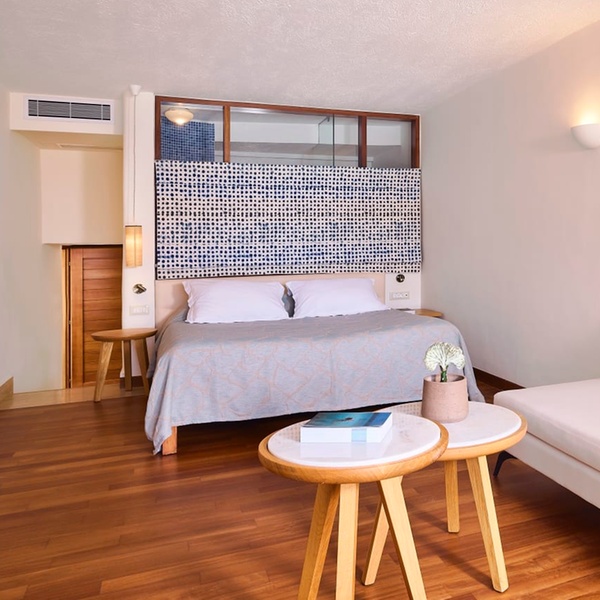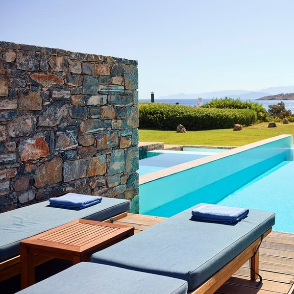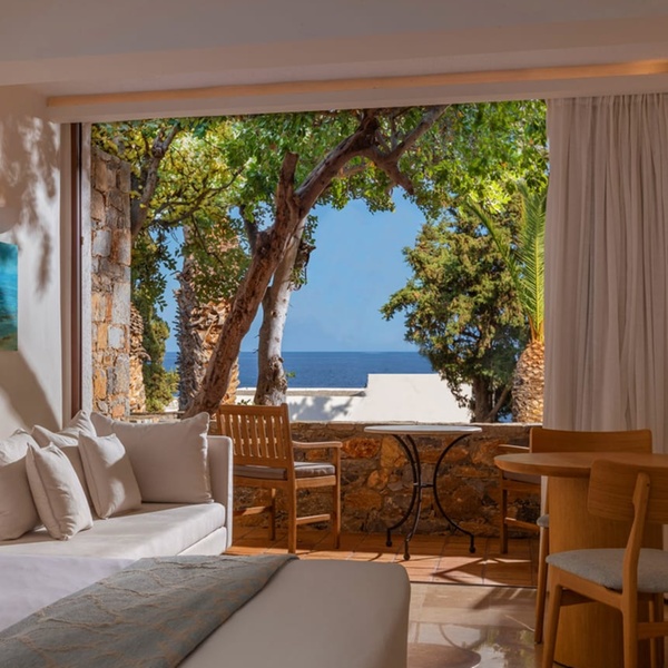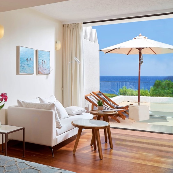 Pour un séjour en toute intimité, c’est pour cette suite décloisonnée qu’il faut opter. Vaste et lumineuse, elle met à votre disposition une piscine privée depuis laquelle vous ne pourrez que vous détendre face à l’horizon découpé de la baie de Mirabello. Dans cet endroit confortable, succombez à la sérénité.
