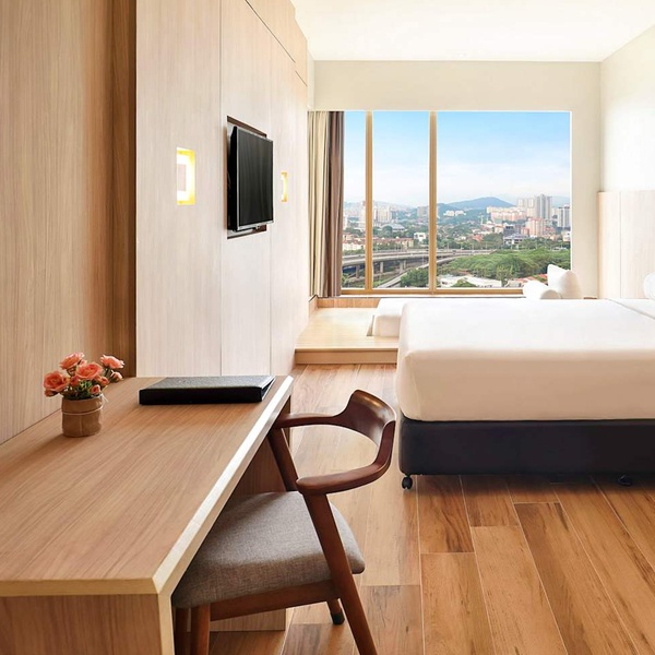 Parfaitement adaptées aux vacances en famille ou en groupe dans le centre de Kuala Lumpur, ces chambres peuvent abriter jusqu'à quatre voyageurs. Ces chambres d'angle de 30 m² sont équipées d'un lit double et d'un futon près de la baie vitrée donnant sur la ville.