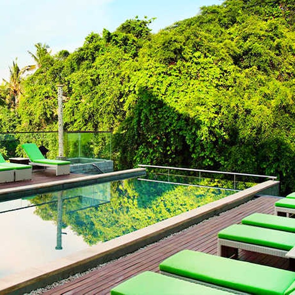 Dès le lever, flânez sur la terrasse de l'hôtel et contemplez la beauté des paysages. Installez-vous sur un transat ou faites quelques brasses dans la piscine, tout en profitant du calme qui règne ici. Poursuivez par une petite séance sportive dans la salle de fitness puis allez vous détendre au spa de l'hôtel, où massages et soins vous seront prodigués dans la pure tradition balinaise. Entre deux visites des environs, ne manquez pas de prendre un cours de cuisine ou de peinture balinaise.