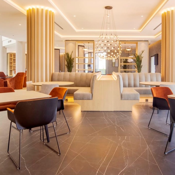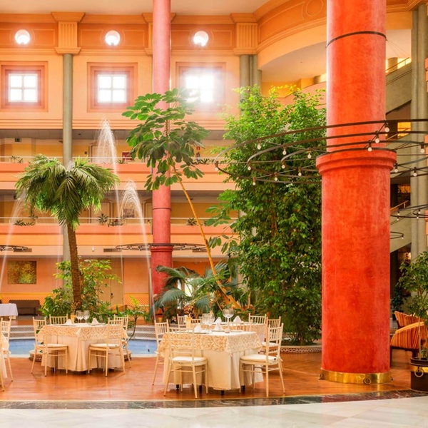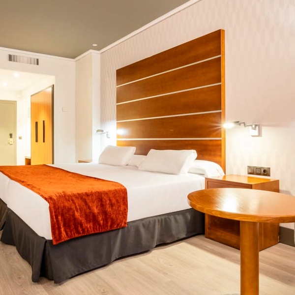 Commencez la journée par un petit déjeuner copieux, incluant œufs et saucisses à l'anglaise, churros espagnols et fruits frais. Le midi, rendez-vous au restaurant pour savourer paëlla, croquetas, jamón ibérico ou salades variées, accompagnés de vin de la région. Le soir, relaxez-vous en buvant un apéritif sur la terrasse. L'hôtel dispose aussi d'une cafétéria proposant des plats rapides.