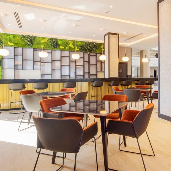 Idéal pour prendre un café, savourer un rafraîchissement ou combler une petite faim, le bar de l'hôtel propose des pizzas, des sandwiches, des burgers, des frites... Installez-vous dans la salle séparée ou près de la fontaine du lobby.
