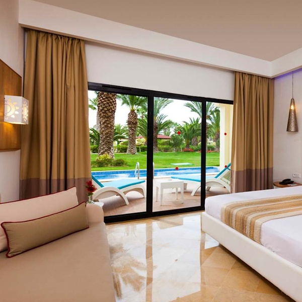 Le Magic Hotel Manar****, situé sur la jolie côte d’Hammamet, cumule les qualités. Niché dans un jardin luxuriant, il présente une architecture contemporaine d’inspiration orientale. L’eau et le soleil sont à l’honneur dans cet établissement convivial, doté d’un parc aquatique, de quatre piscines entourées de transats et d’une plage avec sièges et parasols. Les nombreuses activités et animations pour tous les âges feront le plaisir des familles et des couples venus pour se détendre et se divertir. Laissez-vous bercer par la brise et les vagues et relaxez-vous complètement grâce à la pension tout inclus et le paisible spa.