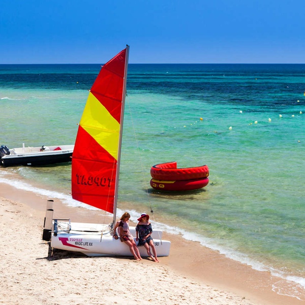Entre amis ou en famille, organisez des tournois multisports par équipes, incluant tennis, football, beach-volley, tennis de table et natation. Sportifs solitaires, découvrez de nouvelles activités chaque jour, comme l’aquagym ou le Pilates… Si vous recherchez des sensations plus fortes, foncez sur un jet-ski ou accrochez-vous à une bouée banane. Le soir, vous pourrez vous relaxer au hammam ou vous offrir un soin du visage avant d’assister à un spectacle concocté par l’équipe d’animation.