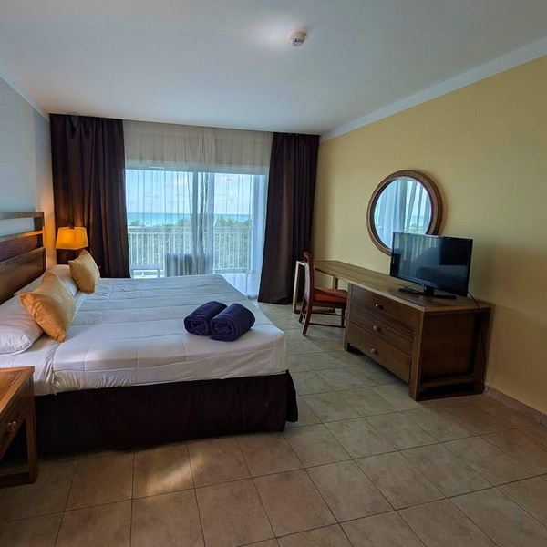 La chambre standard offre un espace généreux qui lui permet d'accueillir trois adultes ou deux adultes accompagnés de deux enfants. Certains hébergements tournés vers le large vous offrent un moment magique à chaque réveil à contempler les nuances bleues et turquoise de la mer des Caraïbes.