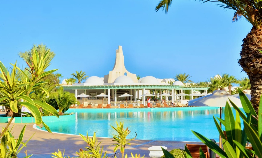 Voulez-vous passer un séjour inoubliable à la mer? Offrez-vous le décor des Mille et Une Nuits de l'hôtel Royal Garden Palace 5*. Érigés au cœur d'un cadre luxuriant peuplé de centaines de palmiers, les bâtiments de l'établissement se sont inspirés des dars, ces maisons traditionnelles qui font le charme Djerba. Surmonté de ses dômes et paré de sa couleur éclatante, ce véritable palais a su intégrer tout le confort contemporain. Dans les espaces communs comme dans les chambres, la riche décoration intérieure évoque le faste d'un grand palais d'Orient et vous donne ainsi l'occasion de vivre un séjour… royal!