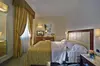 Cette chambre se dote d'un coin salon avec fauteuils, idéal pour partager un verre tout en préparant ses excursions dans la cité des Doges. Mobilier en bois massif, rideaux à motifs et moquette confortable créent une atmosphère accueillante et raffinée.