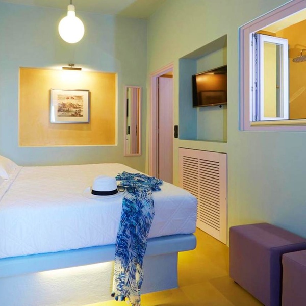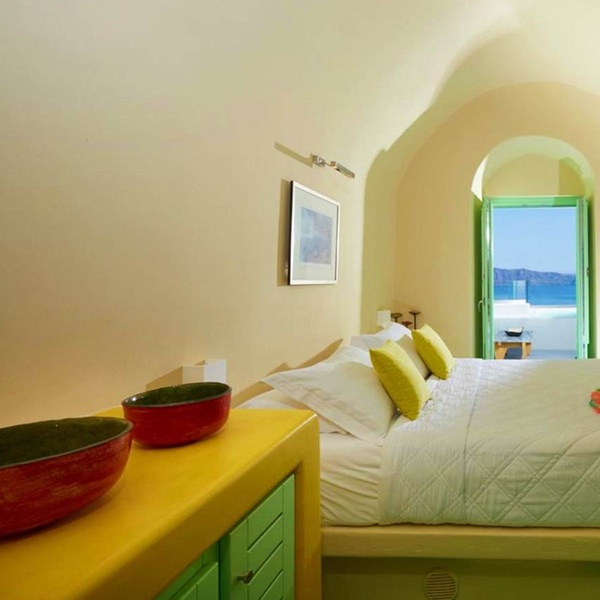Chaque chambre offre une vue à couper le souffle sur la mer Égée et le centre de la caldeira. Baignoire spacieuse, climatisation et literie confortable permettent de se détendre dans une atmosphère cosy.