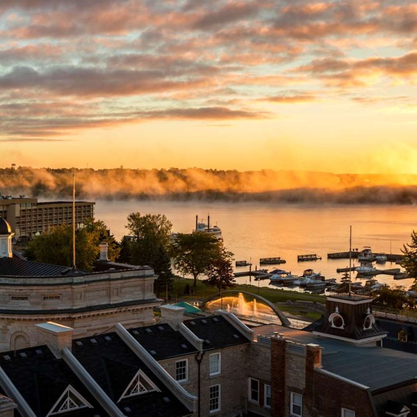 En traversant la région, sur les rives du lac Ontario, se trouvent les « Mille-Îles ». Plus de 1 500 îles, petites et grandes, partiellement inhabitées, forment une région d'une beauté naturelle incomparable. Vous séjournerez à Kingston, située à l'extrémité est du lac Ontario, au début du fleuve Saint-Laurent et à l'embouchure de la rivière Cataraqui (extrémité sud du canal Rideau). Environ 265 km