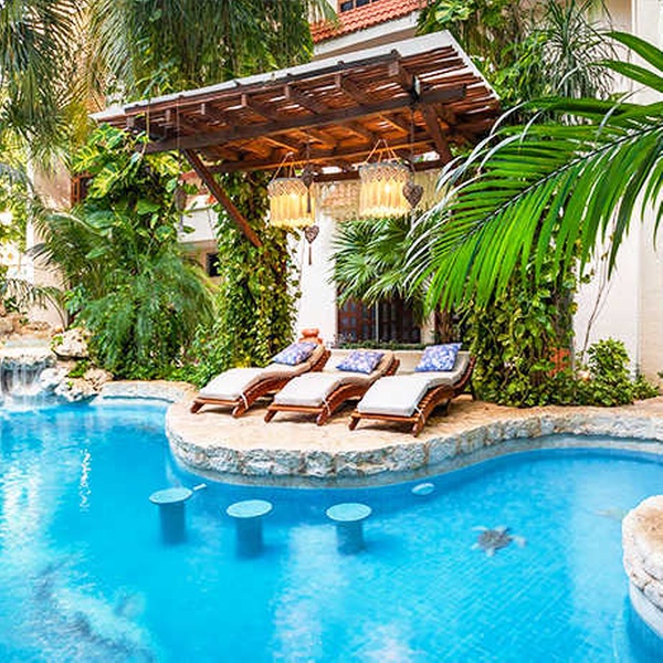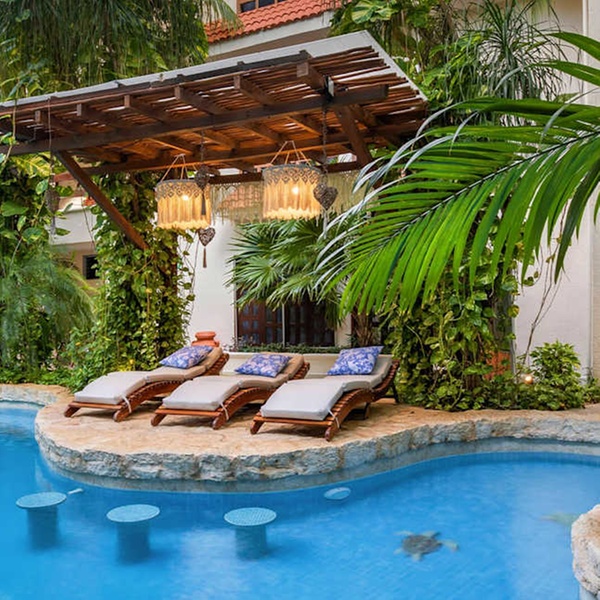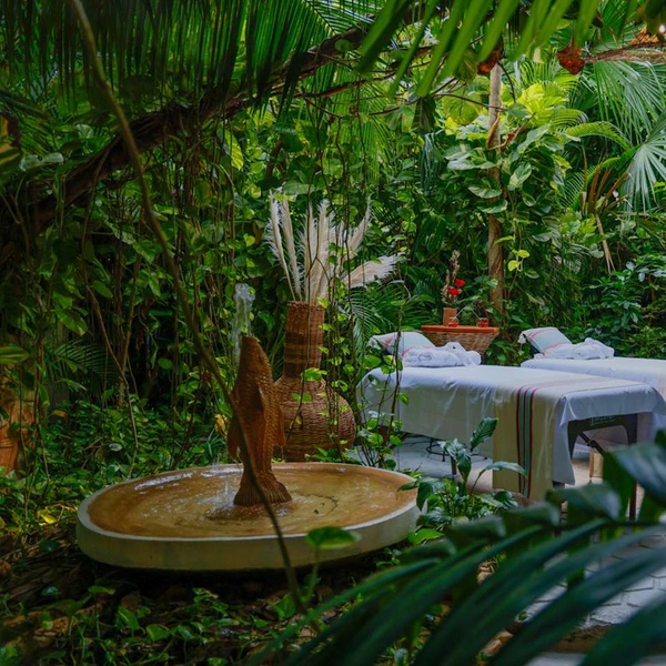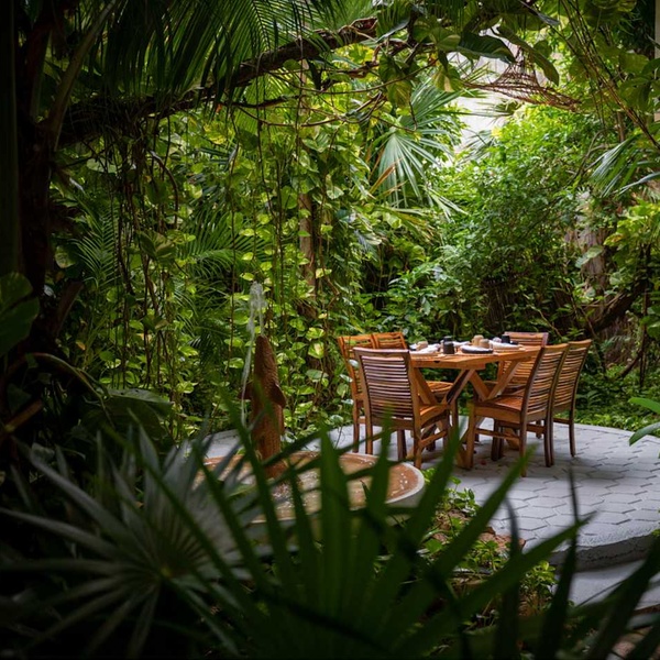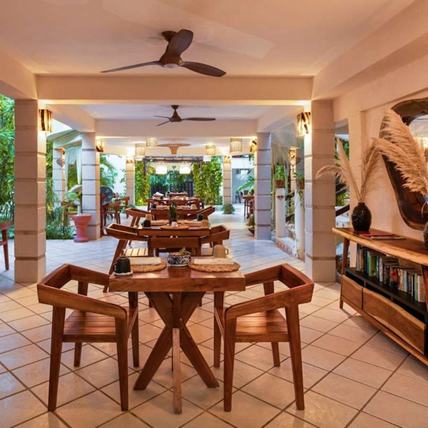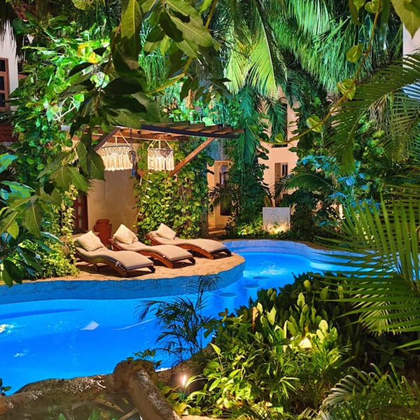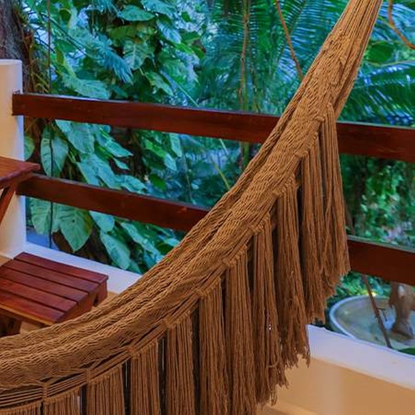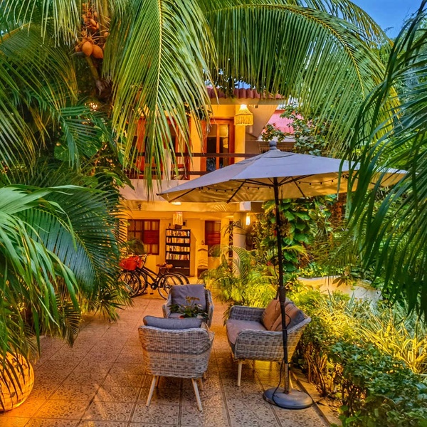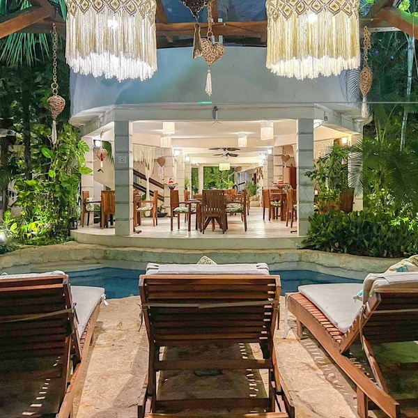 Flânez dans les jardins luxuriants pour profiter d'un moment de sérénité dès le lever du jour. Allez vous baigner dans la piscine entourée de palmiers qui vous offrira un cadre enchanteur. Ces moments de quiétude seront complétés par des instants de repos, confortablement lové dans l'un des hamacs ou des sièges suspendus présents sur la terrasse. Vous pourrez ensuite faire une pause gourmande dans la salle à manger avant de partir explorer les environs.