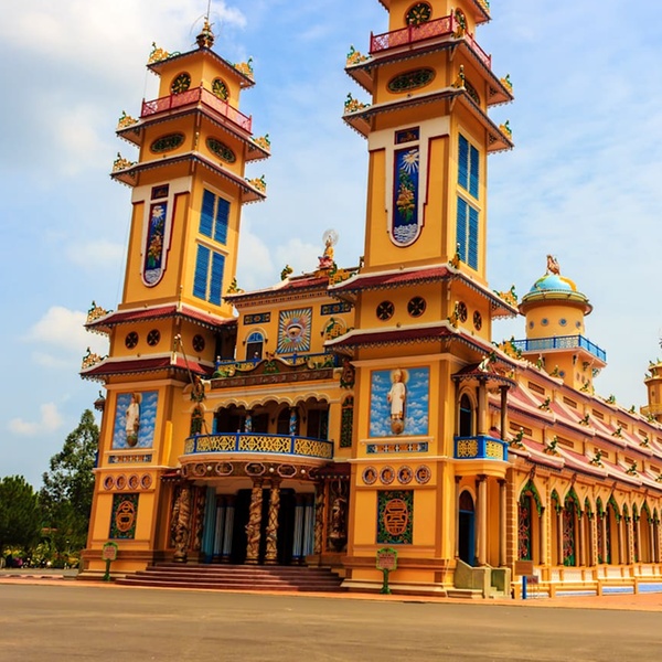 Le matin : Départ en direction de la région de Go Cong, dans la province de Tiên Giang (Distance & durée : 141 km, env. 2h45/3h). Vous visiterez le mausolée Hoang Gia, dédié à une ancienne famille de mandarins de la dynastie des Nguyen. Ensuite, vous découvrirez l’atmosphère charmante et les monuments préservés, notamment le Palais Hai, mélange harmonieux d'architecture vietnamienne et française, et le Temple Cao Dai, un site vibrant dédié au caodaïsme, une religion vietnamienne unique qui combine des éléments du bouddhisme, du taoïsme, du confucianisme et du christianisme. Vous aurez également l'occasion de visiter la pagode Hung Duc, située à l'extérieur de la ville, où vous pourrez recevoir une consultation de santé et des médicaments gratuits basés sur les pratiques vietnamiennes traditionnelles.